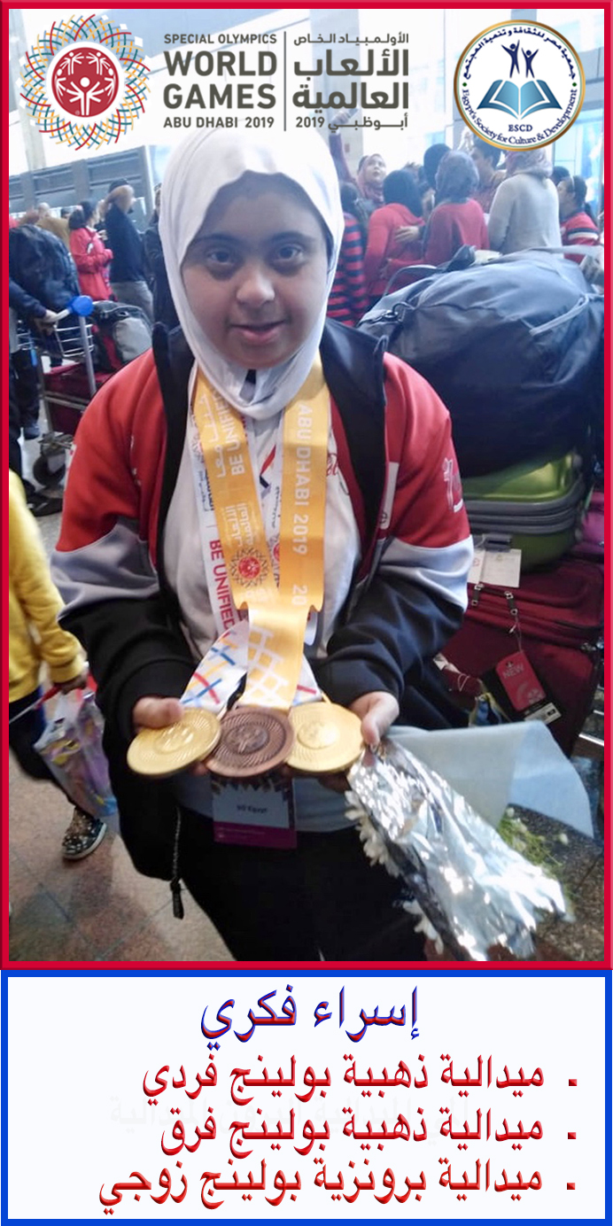 فوز الطالبة إسراء محمد فكري” بثلاث ميداليات في دورة الألعاب العالمية للأولمبياد الخاص التى أقيمت بأبو ظبي فى مارس 2019