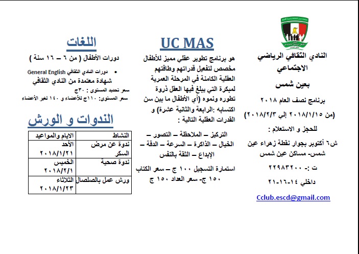 برنامج اجازة منتصف العام - النادى الثقافى