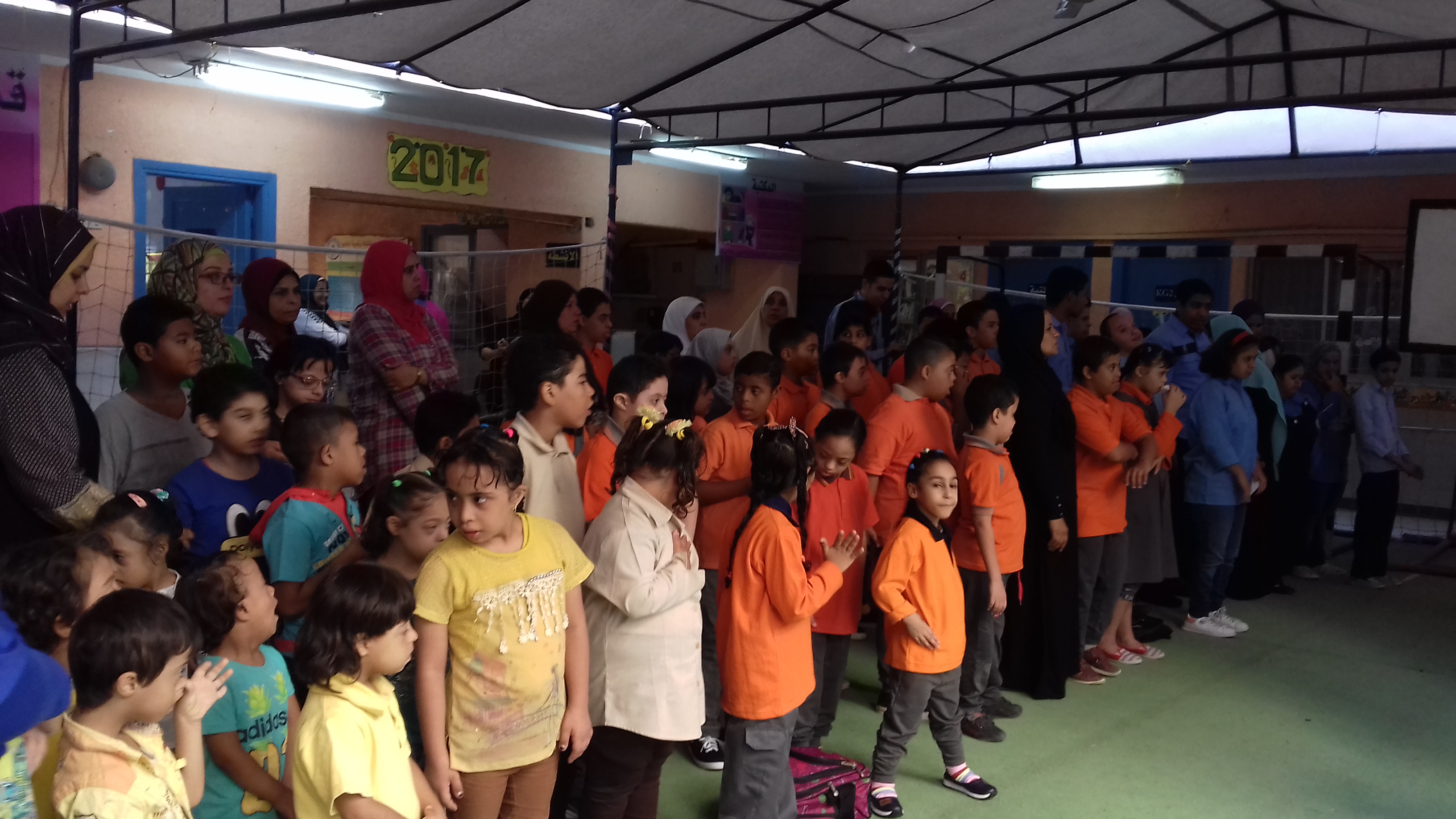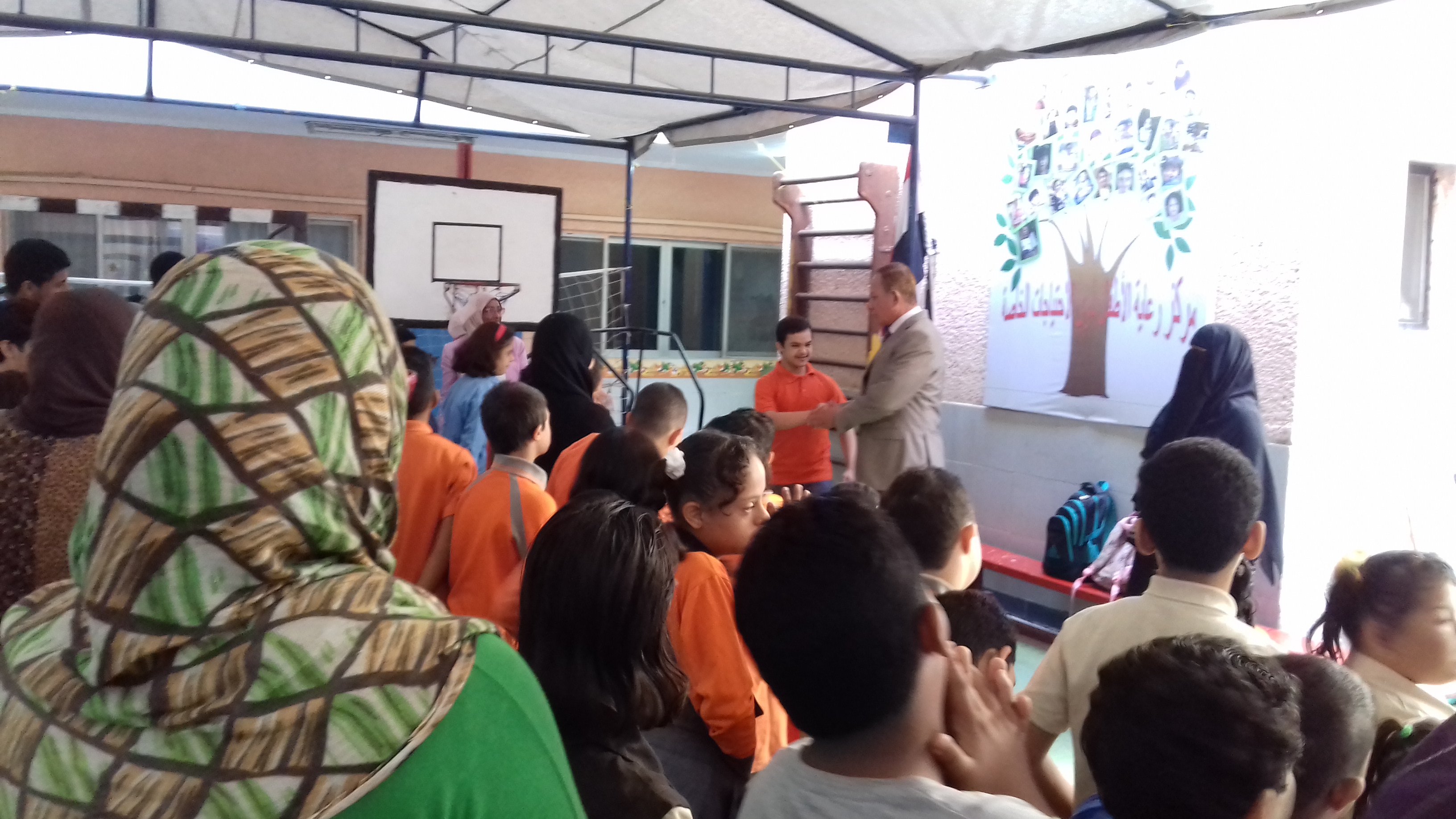 تهنئنة مدير المركز بالعام الدراسى الجديد فى طابور الصباح