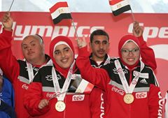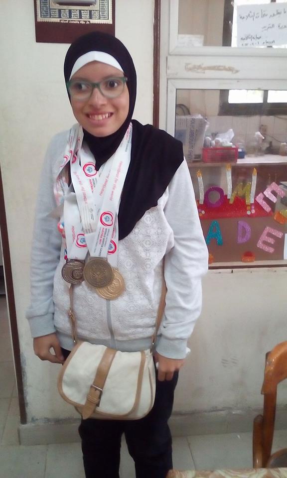 حصول البطلة / آلاء عبدالعزيز المقيدة بالصف الثالثة تعليمى – قسم التربية الفكرية على ( الميدالية البرونزية ، الميدالية الذهبية ) فى مسابقة الجري على ا