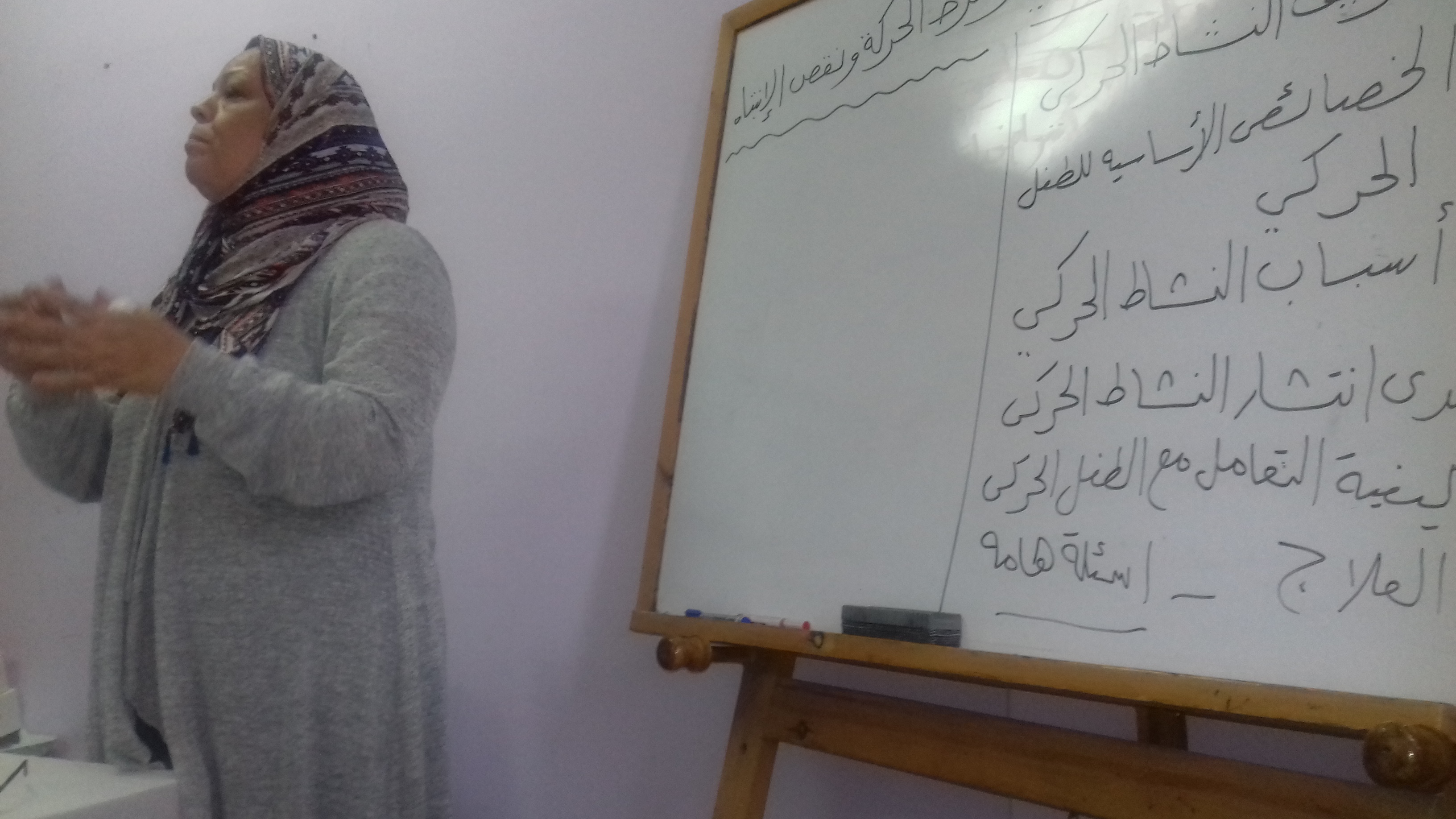 محاضرة أ/ صباح خليل بقسم المدرسة الابتدائية و كانت تحت عنوان الطفل الحركى و فرط الحركة و نقص الانتباه