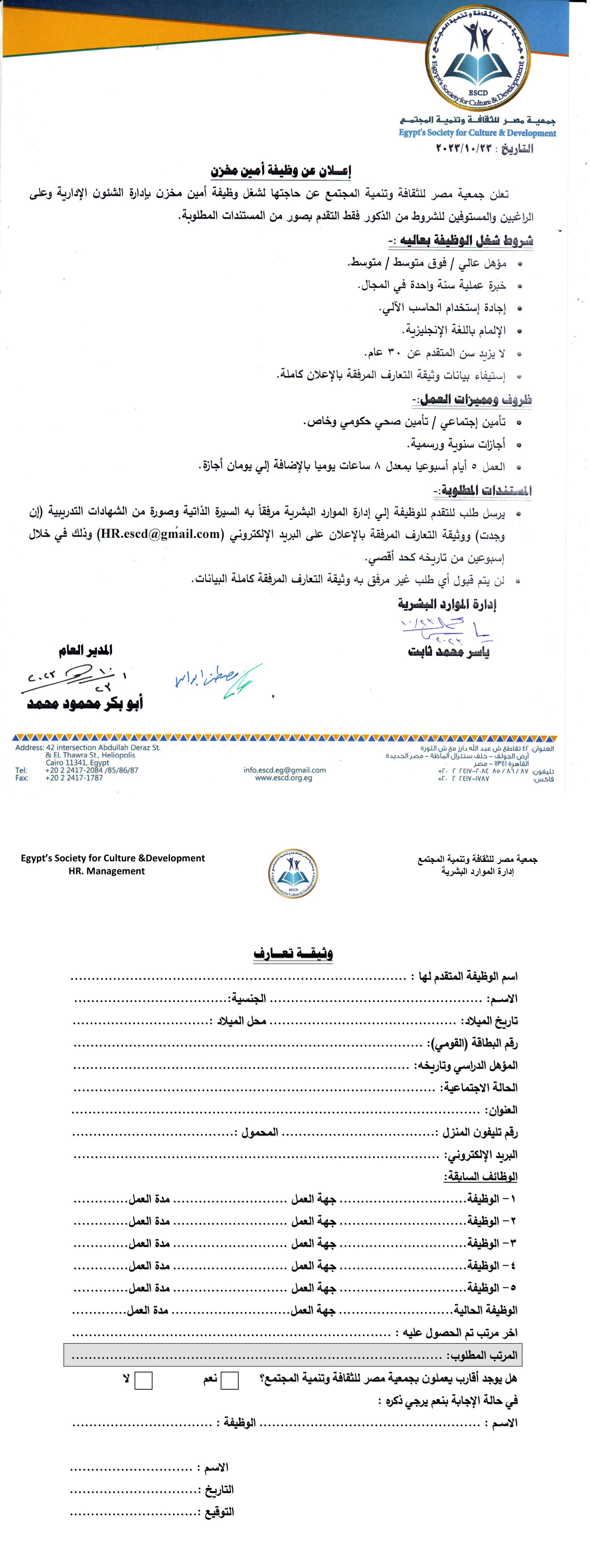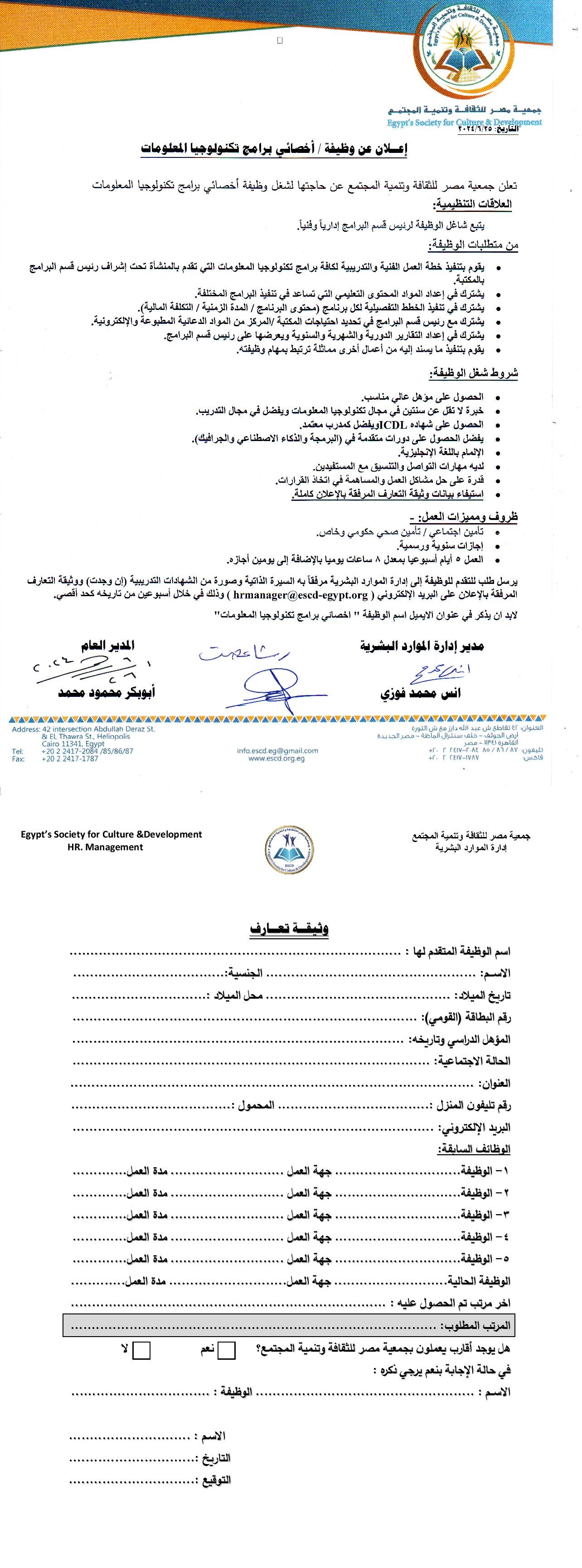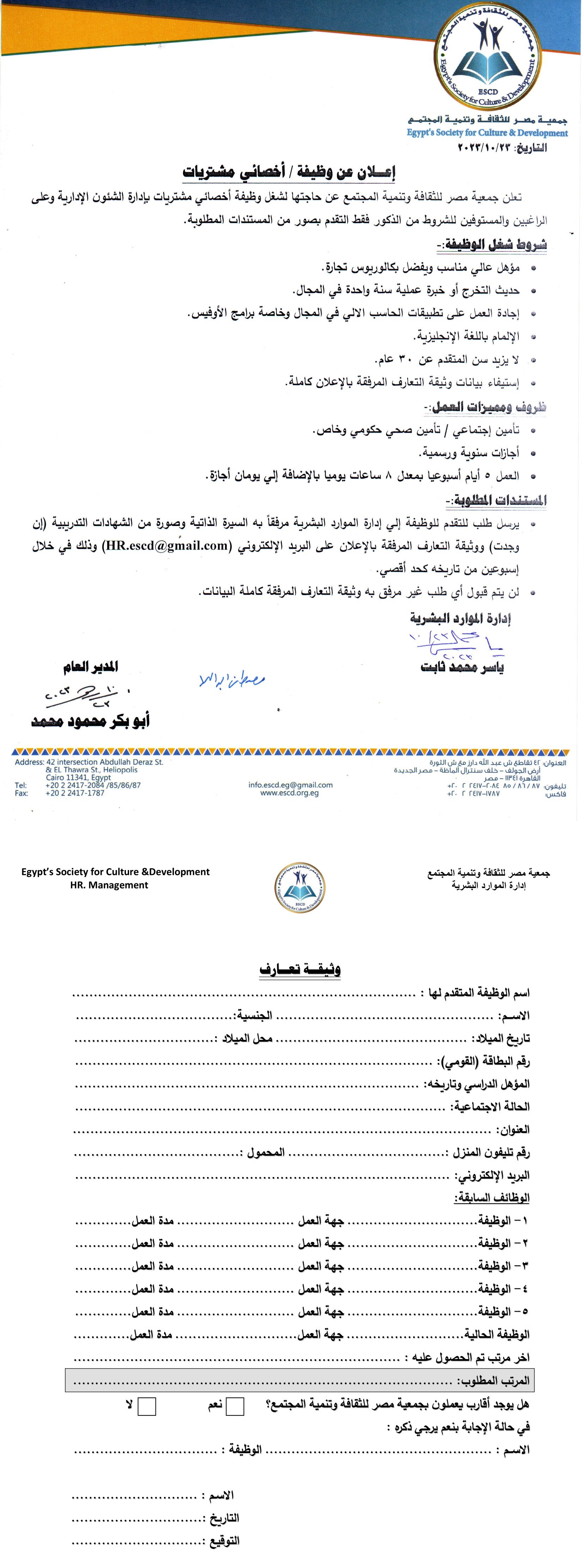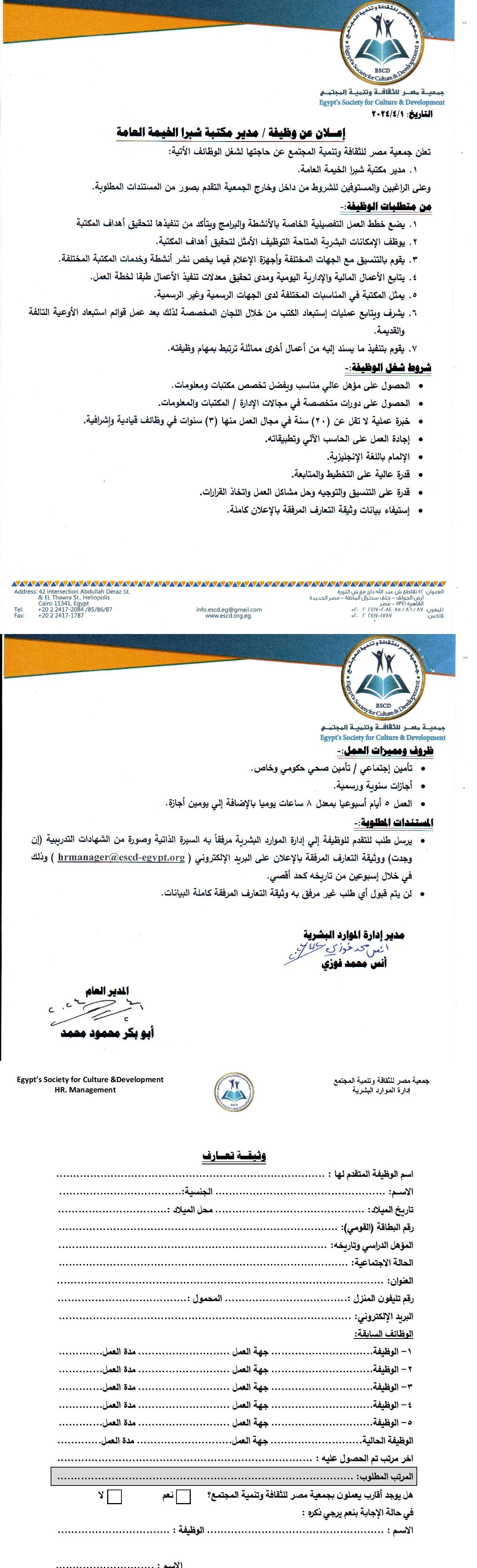 إعلان وظيفة مدير مكتبة شبرا الخيمة
