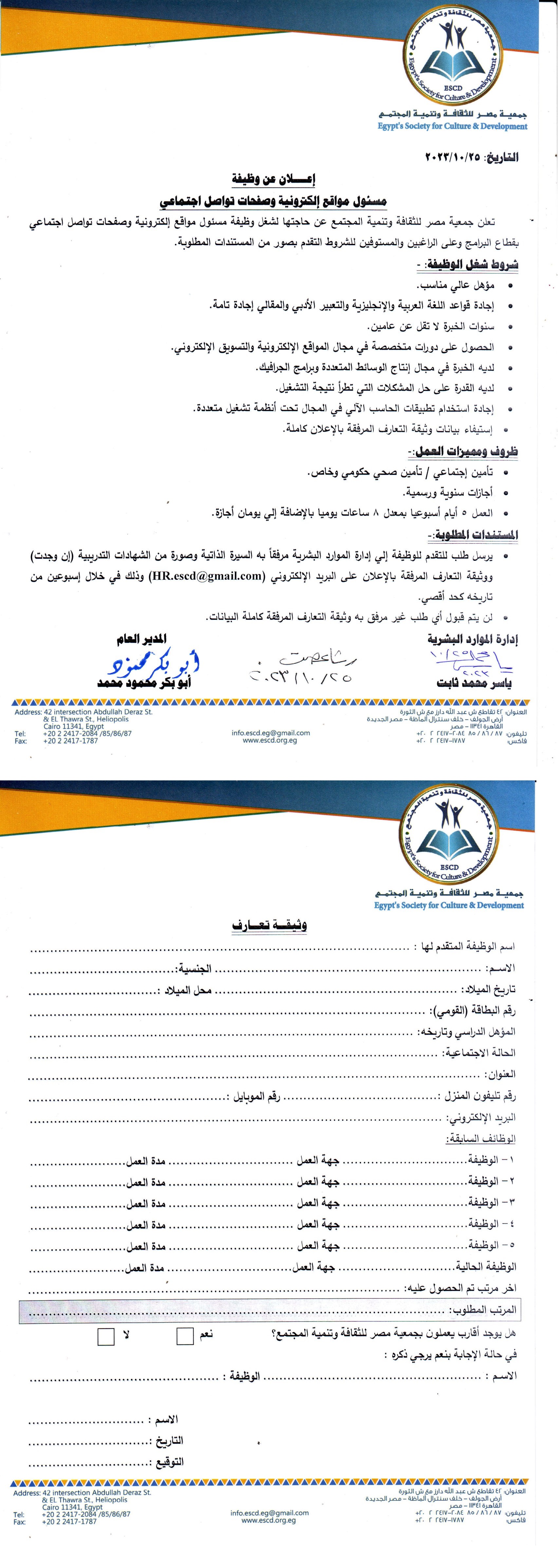 إعلان عن وظيفة مسئول مواقع إلكترونية وصفحات تواصل اجتماعي