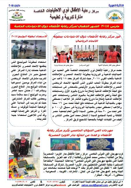 النشرة الشهرية لمركز رعاية الأطفال ذوى الاحتياجات الخاصة - مارس