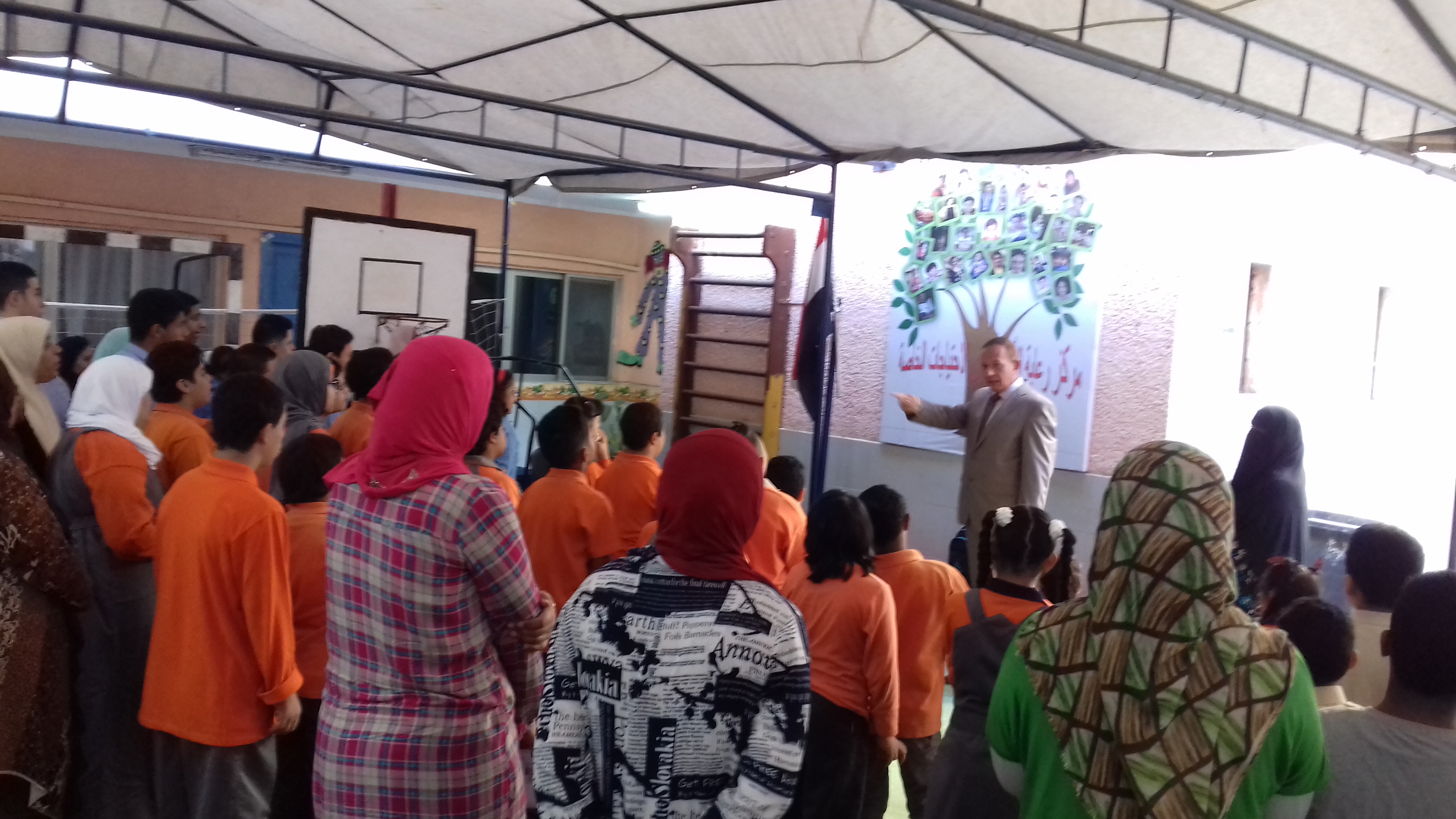 تهنئنة مدير المركز بالعام الدراسى الجديد فى طابور الصباح