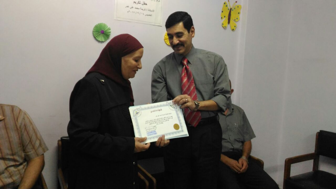 تكريم الأستاذة الفاضلة / كريمة على عمر على مجهوداتها طيلة 16 عام قضتها مدرسة لغة إنجليزية