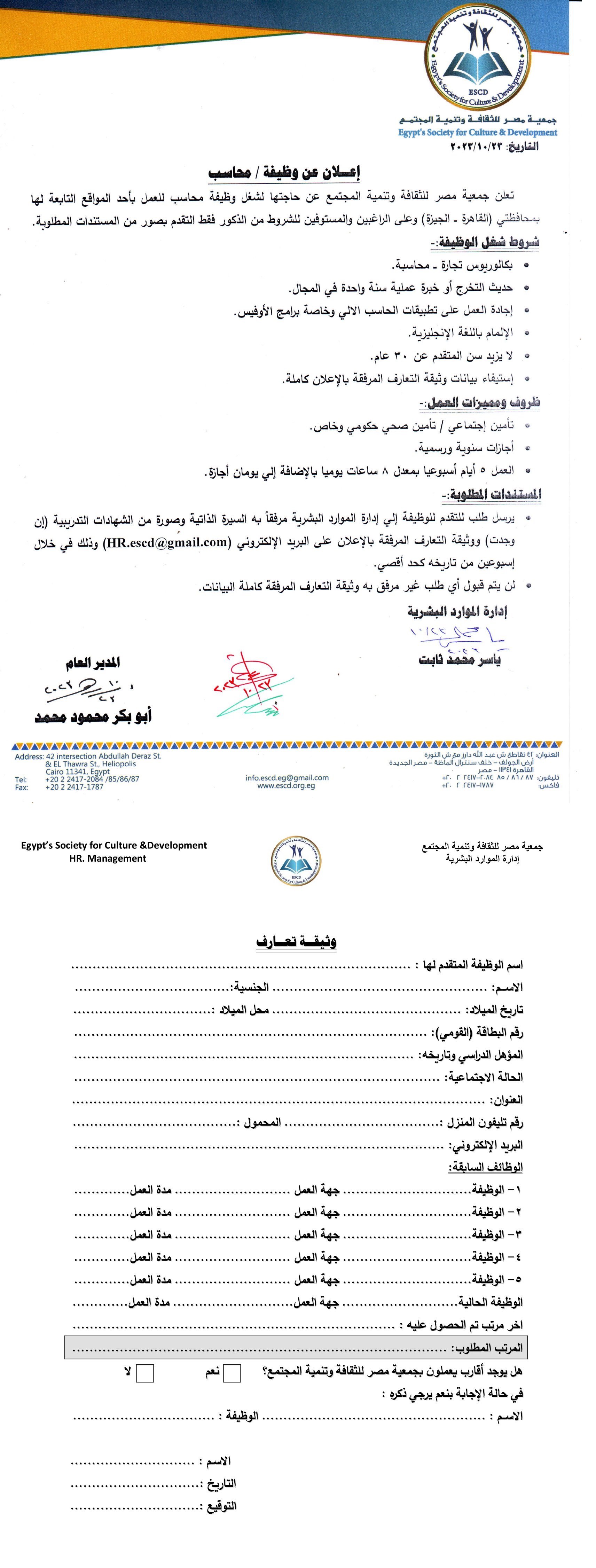 إعلان عن وظيفة محاسب