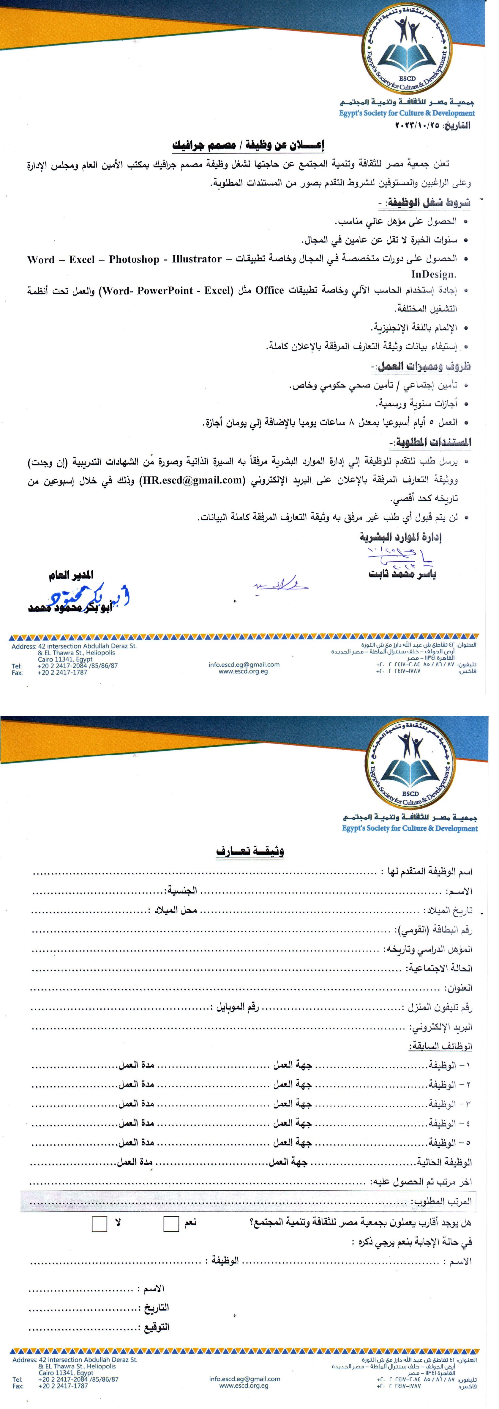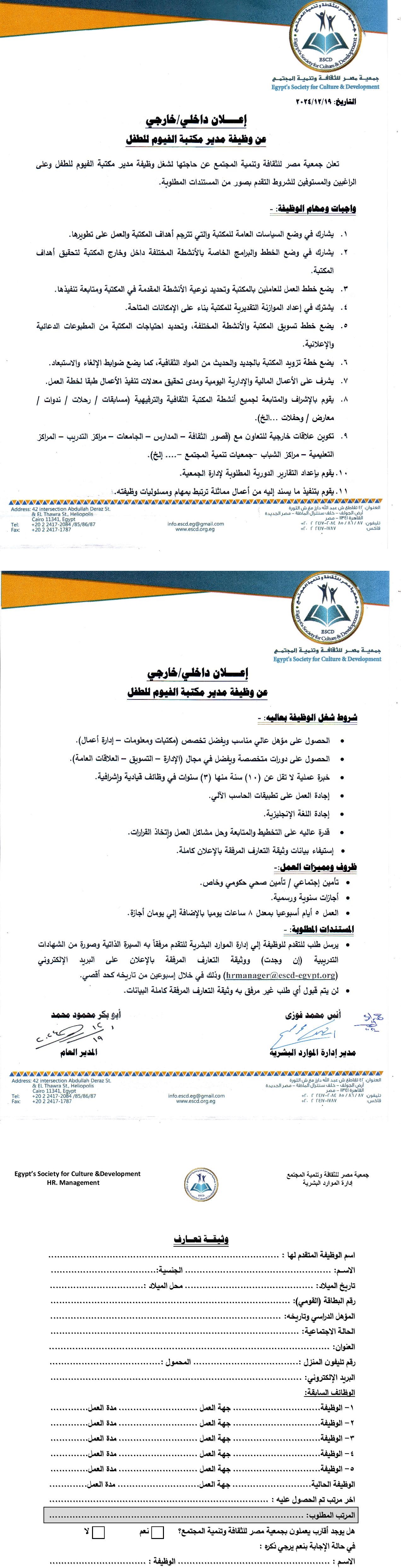 إعلان وظيفة مدير مكتبة شبرا الخيمة